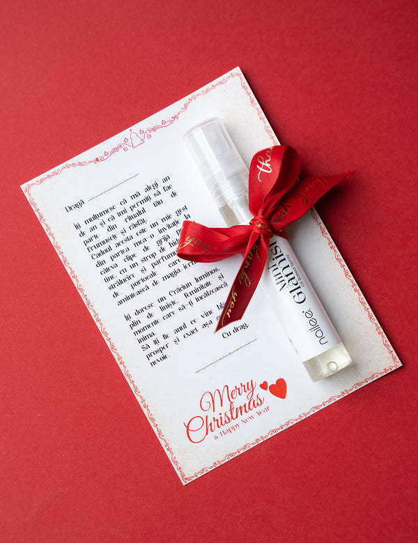 Card cu urare de Crăciun cu spațiu în care poți completa numele tău și al clientei tale.